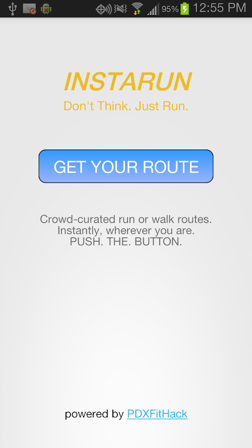 Push the button and get a running route near your current location. Then run it. Don't think, just run.
