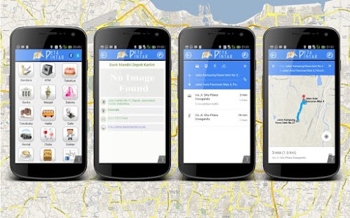 Intelligent Map is an application that serves to detect the nearest public facility located around you. You can use it in the city or out of town or abroad. By using this application you will receive the address information, telephone number and map with direction to the destination location. This app will give you complete estimated time needed to reach the destination either by car, bike or on foot. The location information that you can access through this application is Airports, ATM, Banks, Train Stations, Schools, Bookstores, Salons, Bus Stops, Restaurants, Hospitals, Clinics, Pharmacy, Pet Shops etc.