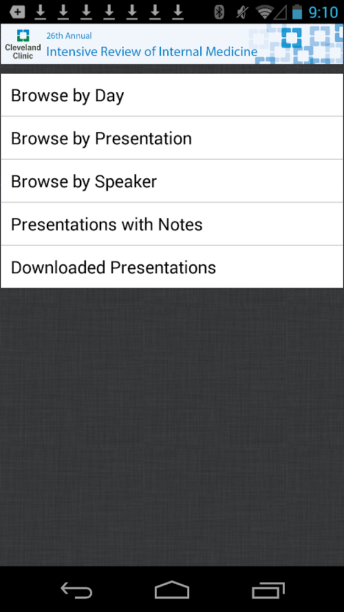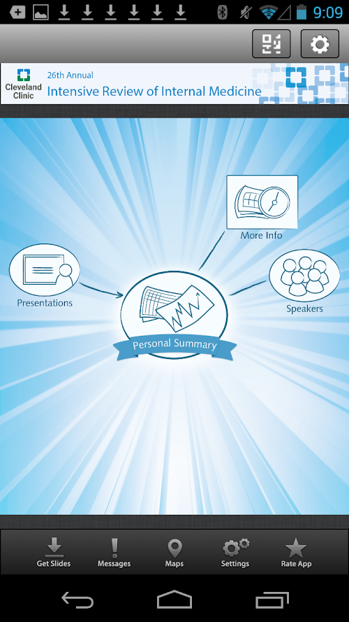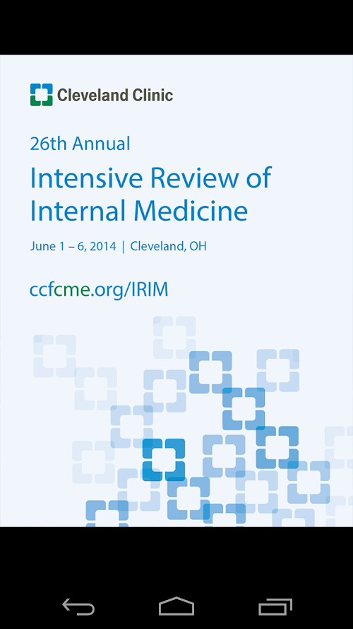 The Cleveland Clinic Internal Medicine 2014 mobile application allows you to browse presentation abstracts and speakers, and access available presentations for the Intensive Review of Internal Medicine Course.