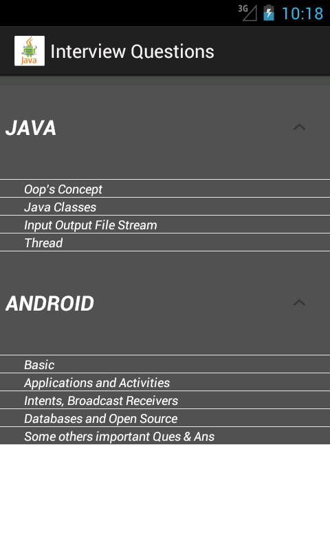 This version of Interview Questions Answers Android App comes with one universal variant which will work on all the Android devices.