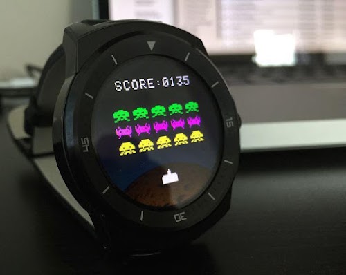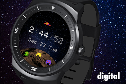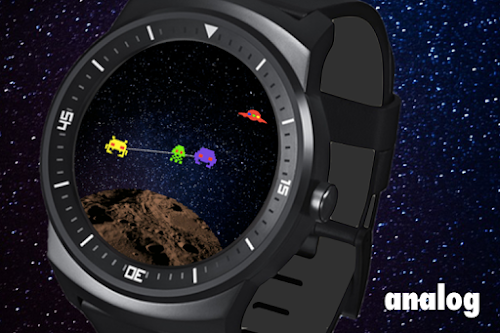 3 Space Invaders theme interactive watch faces for Wear OS (Android Wear).