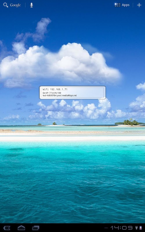 Special feature: tap/click widget to resolv external/public IP address and hostname.