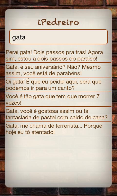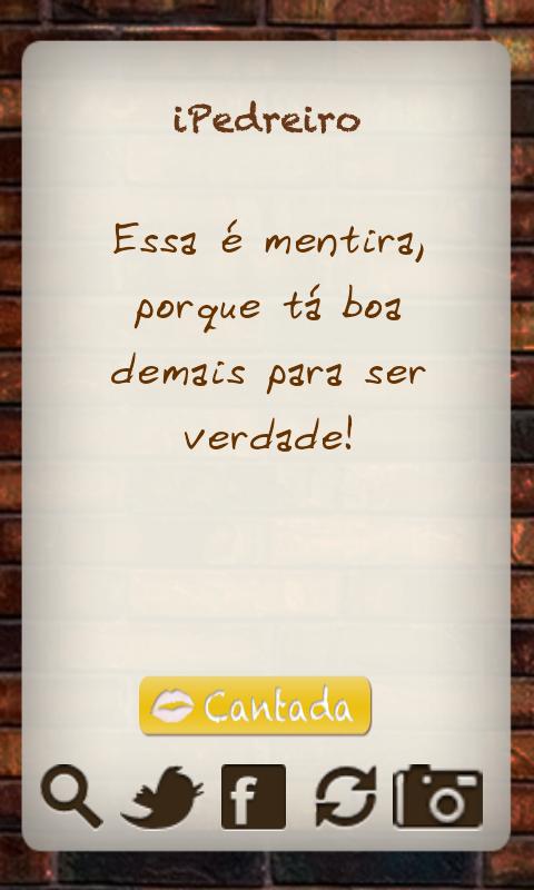 - Integração com Twitter e Facebook. Envie sua cantada para alguém especial;
