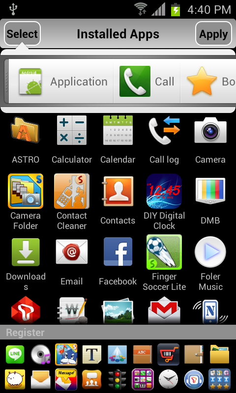 3. Press the Select button application, phone number, you can add bookmarks, etc..