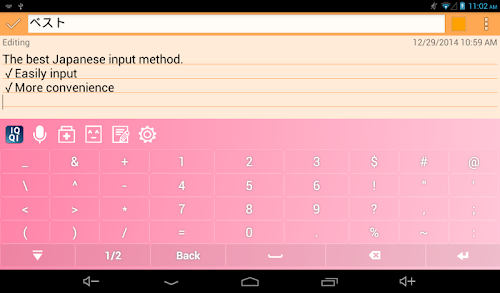 ♥ Swipe the keyboard or click the [JP]-key to change 50key/12key(10key)/Romaji Keyboard