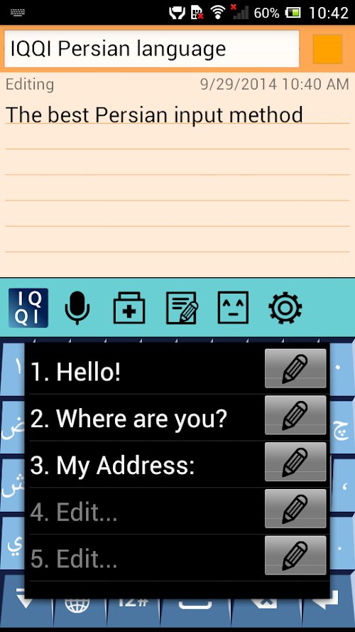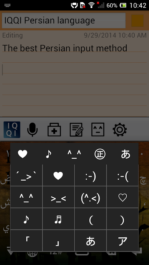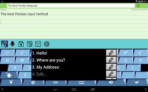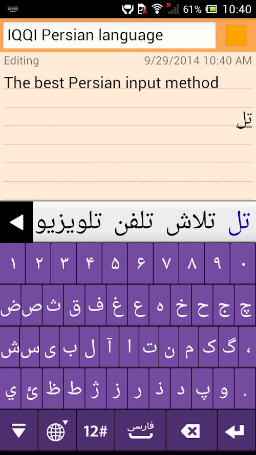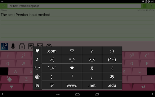 "IQQI - Persian Keyboard" is an enhanced Persian(Farsi) virtual keyboard application that supports Android 2.x~4.x.