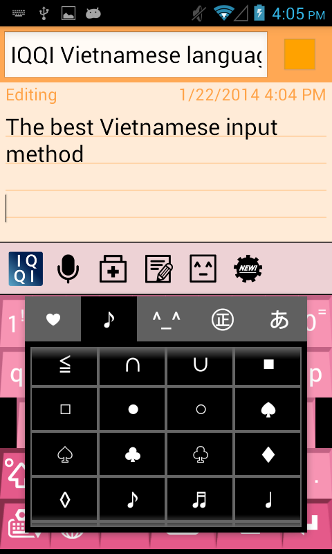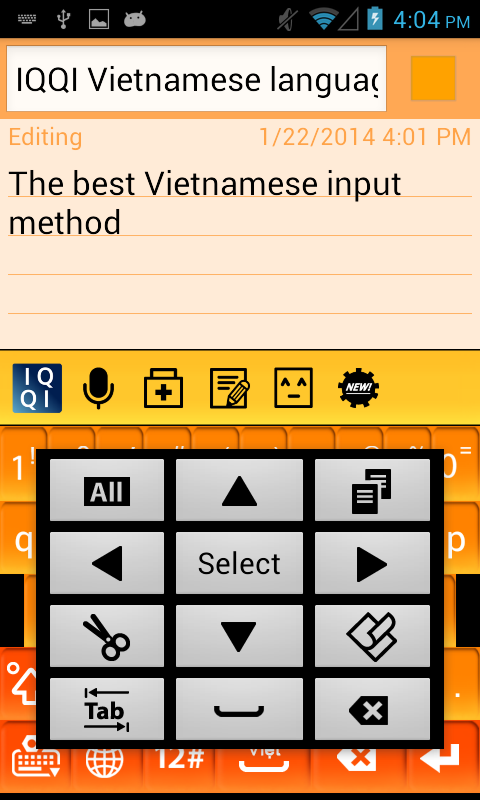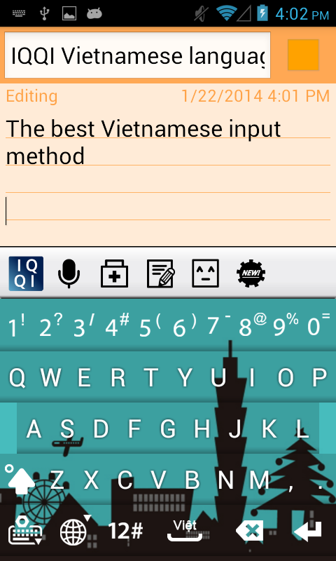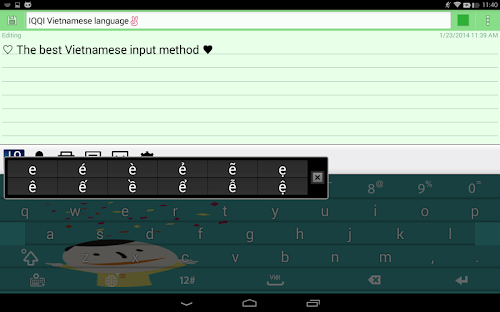 "IQQI - Vietnamese Keyboard" is an enhanced Vietnamese virtual keyboard application that supports Android 2.x~4.x.