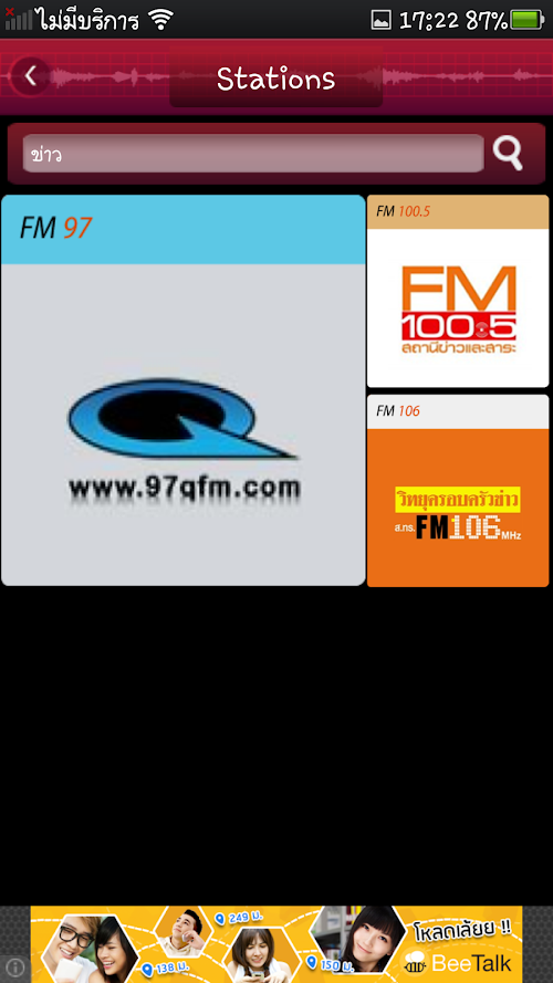 - แอพลิเคชั่นสามารถทำงานในโหมด Ofline ได้ แต่จะไม่สามารถรับฟังวิทยุได้