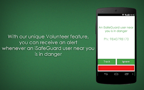 * Alert iSafeGuard volunteers (users who have opted to help their community) near them to reach out for help.