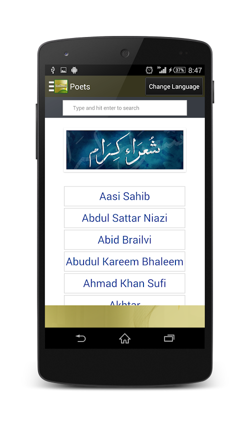 Database can be searched by Poet Name and language. And also can be viewed in two fonts Urdu and Roman Urdu.
