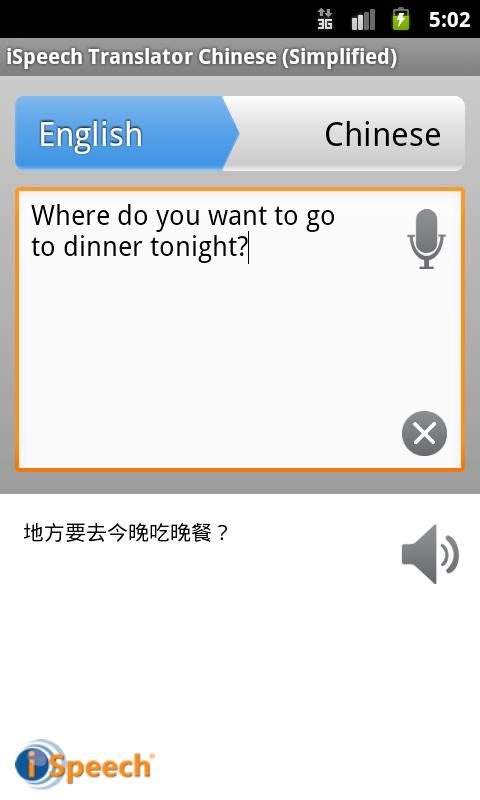 iSpeech Translator™ Chinese (Simplified) Features: