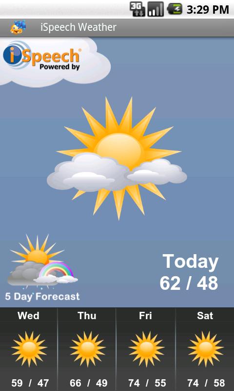 your area. Click on a specific day and iSpeech Weather will speak the forecast aloud.