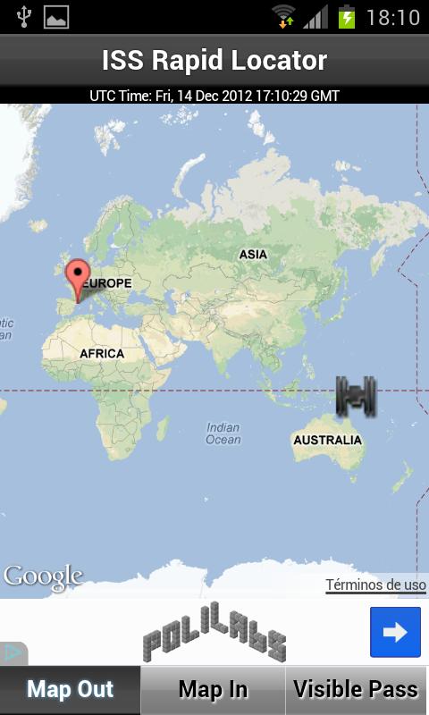 ISS Rapid Locator is a simple application to locate the real time position of ISS (International Space Station) over the map, and also inform about the next visible passes.