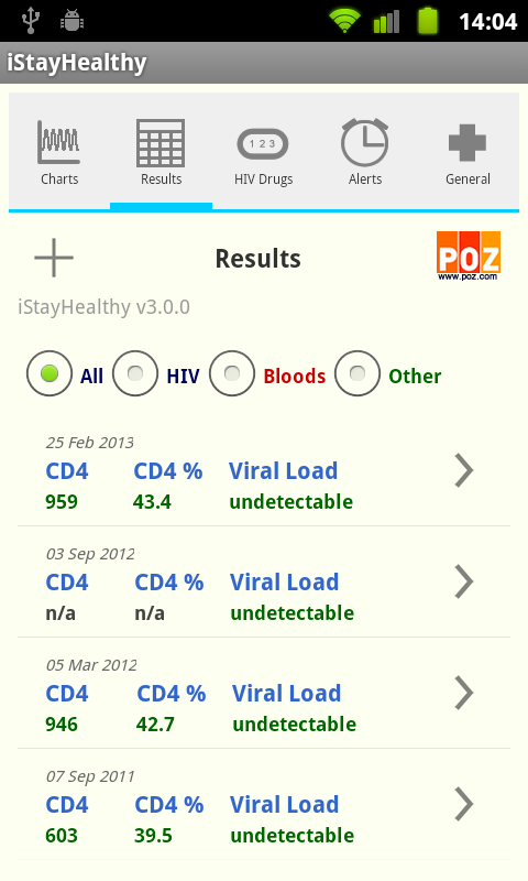 * Review relevant results (CD4, CD4% and Viral Load) in simple charts