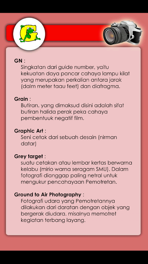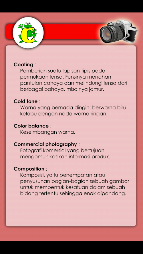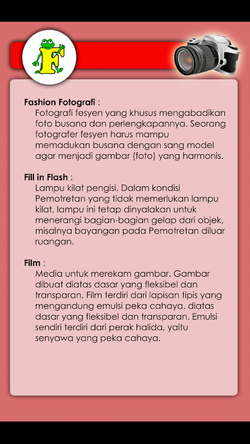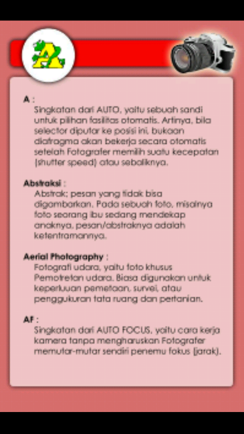 If you are looking to download other versions of Istilah Dalam Fotografi Android App, We have 1 version in our database. Please select one of them below to download.