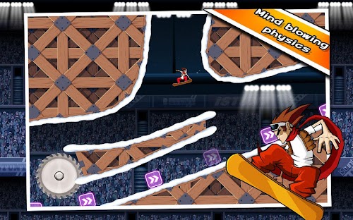 Escape deadly buzz saws, keep you balance through gravity shifts and speed boosts, grind your way to victory in this fast paced and insanely addictive snowboarding game!
