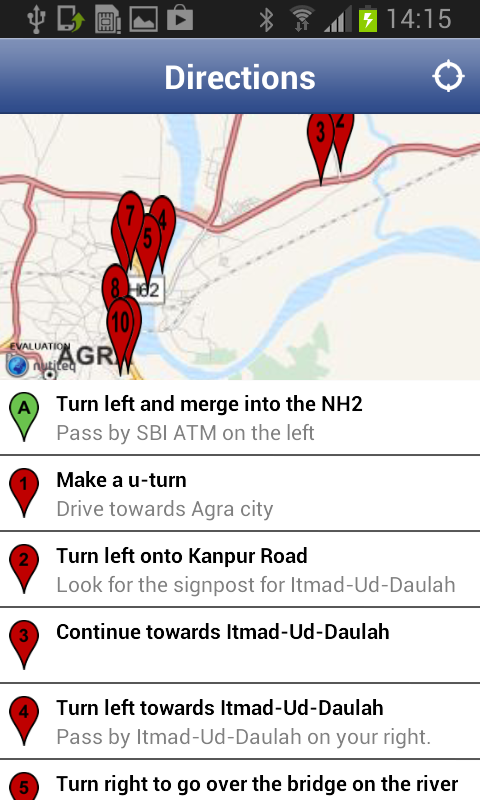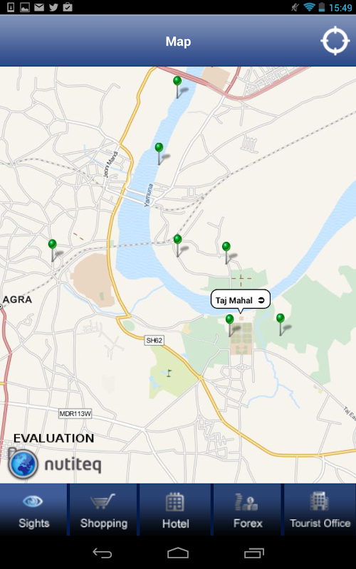 Find your way around the city of Agra using GPS and offline maps. Locate all the sights and shops on the map vis-a-vis your current location.