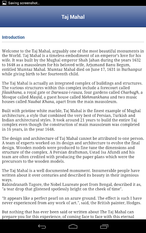 Don’t hire guides when you are in Agra for they often have little knowledge of the Indian monuments and tell fancy stories that have no basis in history. iTajPlus comes with 3 audio tours to main monuments at Agra – Taj Mahal, Sikandra and Itmad-Ud-Daulah. The info is well researched and combines a unique mix of history, legend and architectural facts to bring these grand monuments to life. If you prefer reading to listening, you can do it as well.
