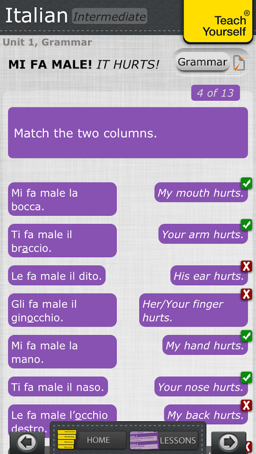Teach Yourself's fun practice exercises allow you to learn Italian grammar by enjoying interactive activities rather than enduring lengthy explanations.