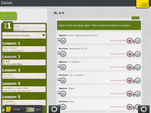 With 4 FREE Units that include authentic conversations with native speakers, reading, writing, listening and pronunciation practice with our unique 'Record & Compare' feature, you'll be speaking Italian in minutes! This app is free to download and lets you try-before-you-buy and then pay-as-you-learn.