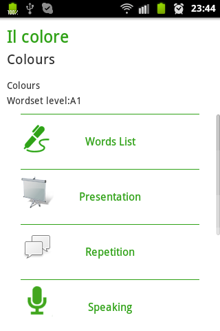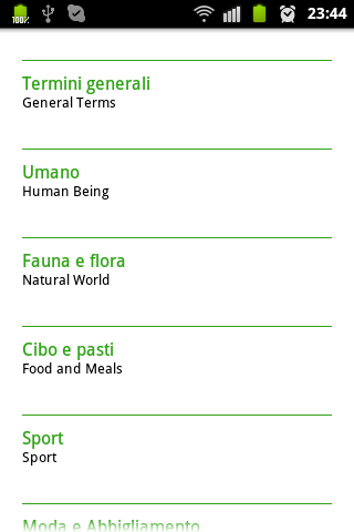 This app enables you to learn italian language. It has also totaly free english-italian dictionary with multimedial words.