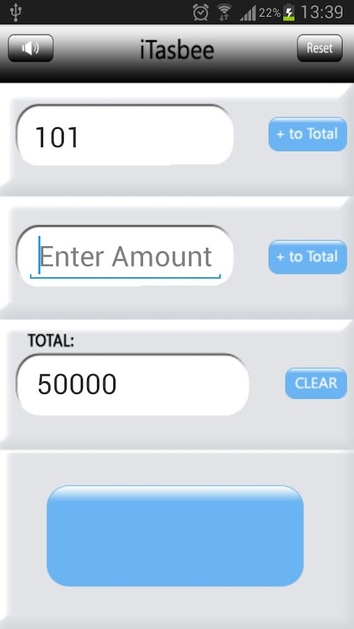 You are also able to enter amounts previously read on a different tasbee, and save it to the Total Count.