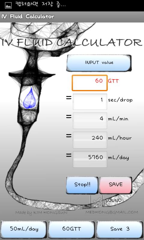 A Frequently used value(for example 10GTT, 100mL/hour) can be saved in the 3 slot at bottom, so you can easily and quickly use the value.