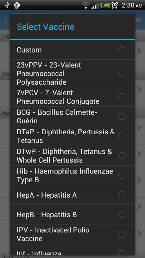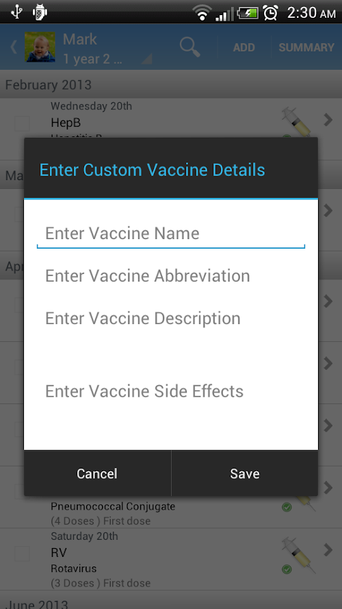 Immunization schedules can be customized by selecting vaccines from our list of available baby vaccines or by adding your own for your baby, toddler or teen.