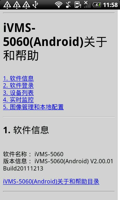 iVMS-5060 V2.01 mobile software is installed on the iOS 3.0 and advanced mobile platform. Connecting to the wireless network, it fulfills the functions of the devices connected to the server platformsuch as live view, PTZ control and so on. The iVMS-5060 client software gets access to the server platform via Wi-Fi, 2G and 3G network. Note:Using the iVMS-5060 software to access to the server platform may generate cost for data transfer. For the detailed information, please contact the local operators.