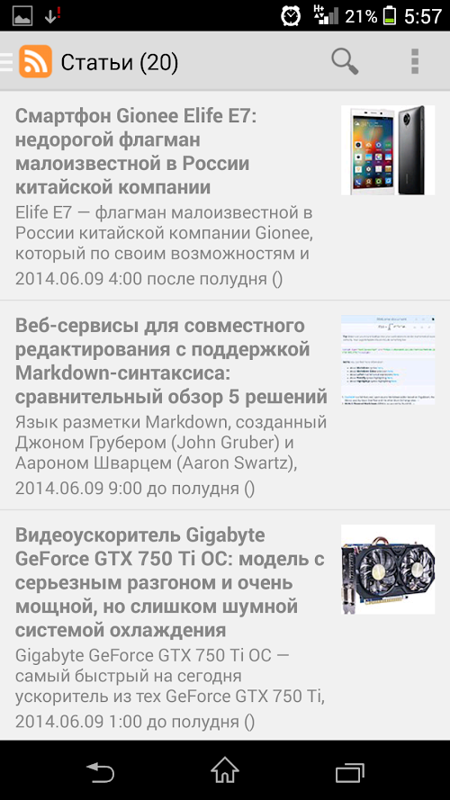 Позволяет читать новости техники и технологии, анонсы статей с порталов iXBT.com и Gametech.ru, а также следить за лентой видео на Youtube канале.