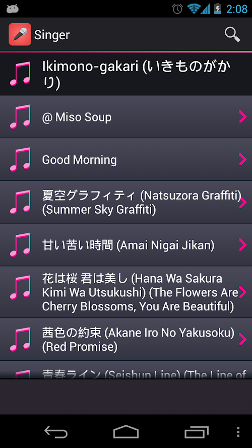 In this application you can find great number of J-pop lyrics . This application does not contain audio or video. It only contains the lyrics, the title and the name of the artist.