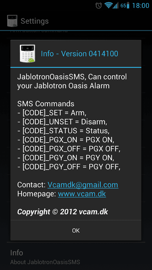 This application is pre-programed for a Jablotron Oasis JA-82Y GSM system, using the codes from this manual.
