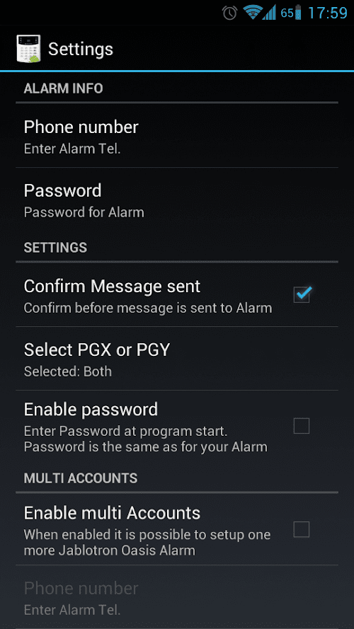 This version of Jablotron Oasis SMS Android App comes with one universal variant which will work on all the Android devices.
