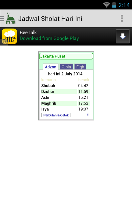 Install aplikasi Jadwal Shalat Puasa Imsakiyah 2014 M / 1435 H ini untuk mendapatkan update jadwal sholat seluruh kota di Indonesia mulai dari jakarta, semarang, ngawi, surabaya, medan, pontianak, dst.
