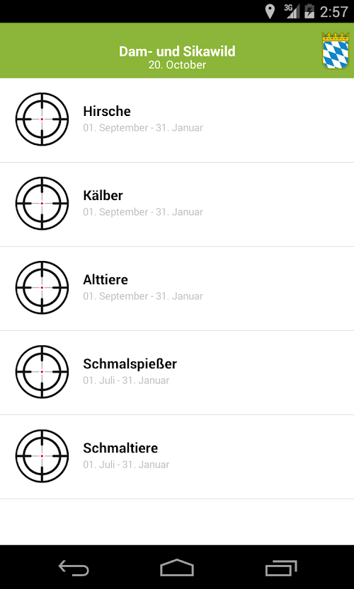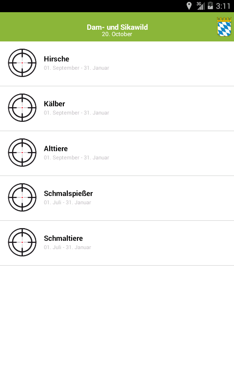 - Die Ortungsfunktion findet heraus in welchem Bundesland Sie sich gerade befinden und zeigt die jeweiligen Jagdzeiten an