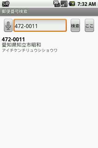 This is an application to find an address and postal code in Japan.