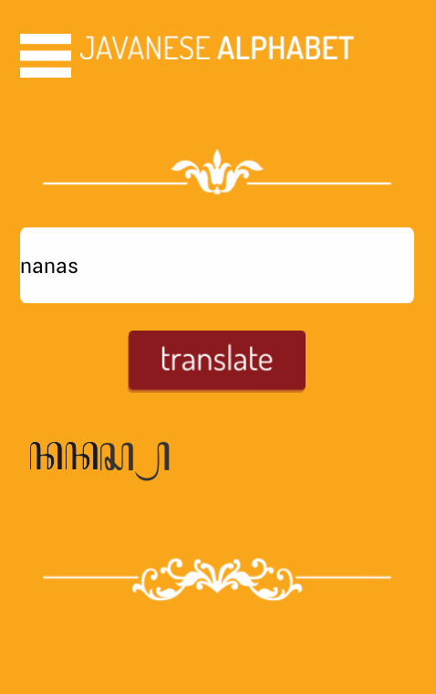 Javanese Alphabet is android based application that can translate Indonesia language into Aksara Jawa (javanese).