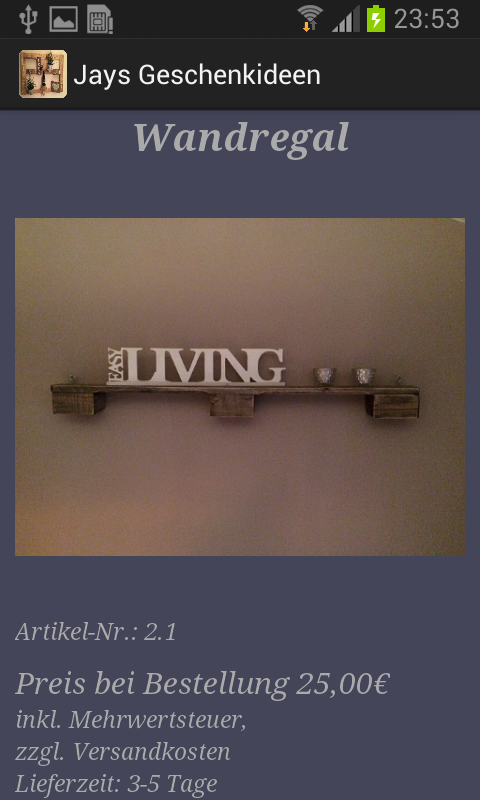 This version of Jay's Geschenkideen Android App comes with one universal variant which will work on all the Android devices.
