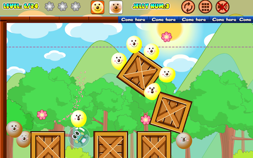 2.Click on a jelly to destroy it.Have the frog collect the bonus flowers!