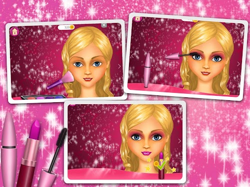 Complete Jenny’s makeover with professional make-up! Apply foundation, fuchsia eye shadows and volumizing mascara for dramatic looks. Finish with rose pink lipstick and Jenny is ready to go party!