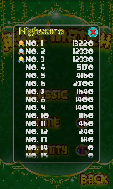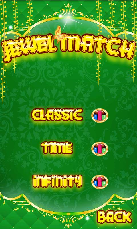 3.Infinity mode:Play just like Classic mode,But it won't rearrange the jewels when you win a level.