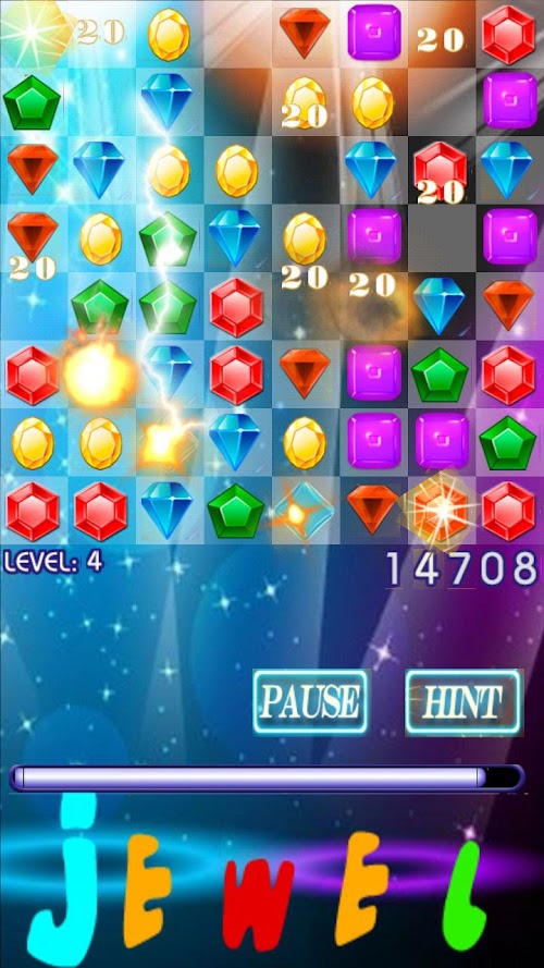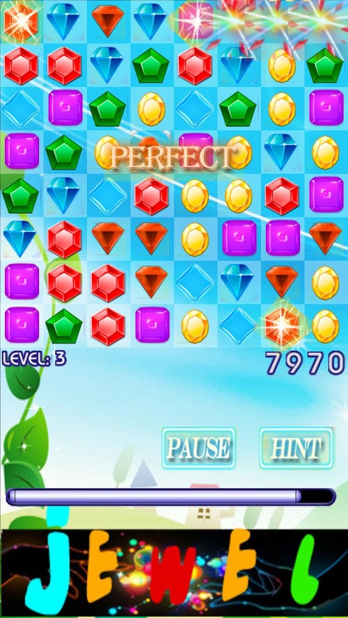 - Swap the jewels to match 3 or more in a line to remove them