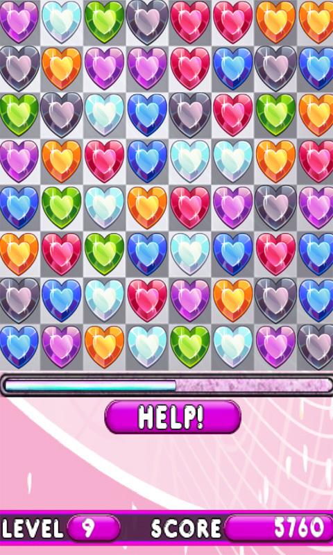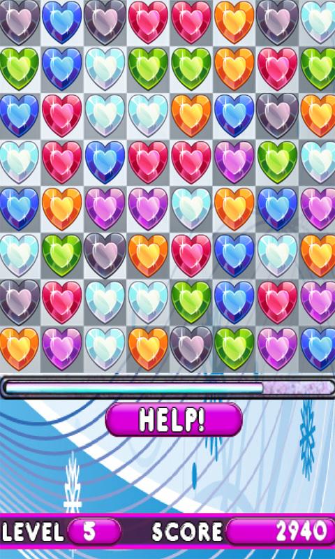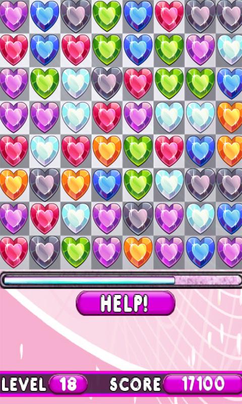 Jewels Hearts is a classic fun and addictive jewels game, with a lot of puzzle jewel levels and three game modes, classic, time mode and infinite jewels mode.