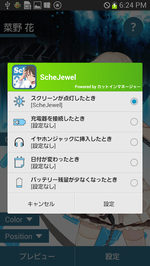 This app can show the next schedule of Google Calender with JewelSavior Character.