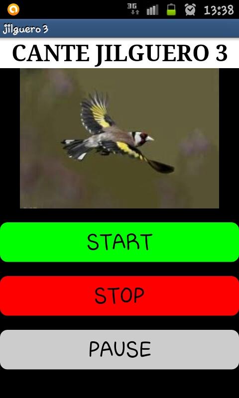 Cante jilguero con 5 minutos de sonido, con opción de start, stop y pause.
