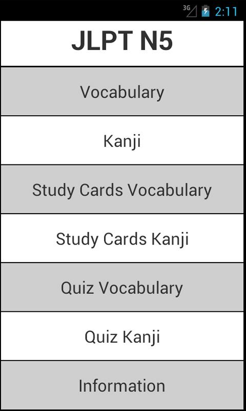 This application prepares you the best for the JLPT N5 exam. It is very handy and easy to use with a lot of features. Ideal for studying in the train, on the plane, at the beach or wherever you like!