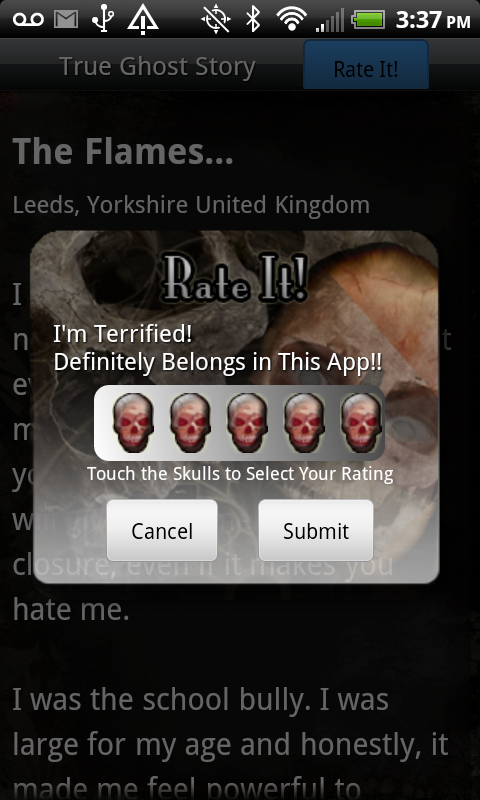 - Rating system! Vote for your favorite stories! Easily find the best and most terrifying stories based on rating!