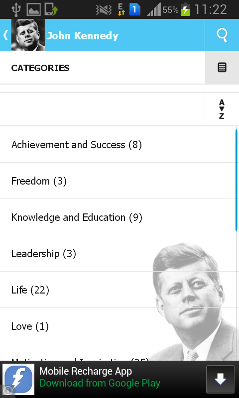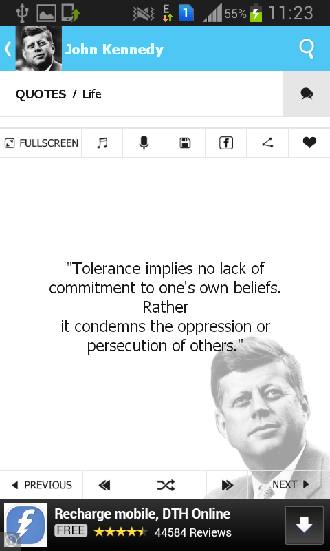 One of the greatest presidents of America, this is the perfect app for all the supporters and fans of President John Kennedy. Our application has a full database of all quotes from John Kennedy, that takes you through his entire journey of life and giving you a complete picture of his views on life, politics, democracy etc.