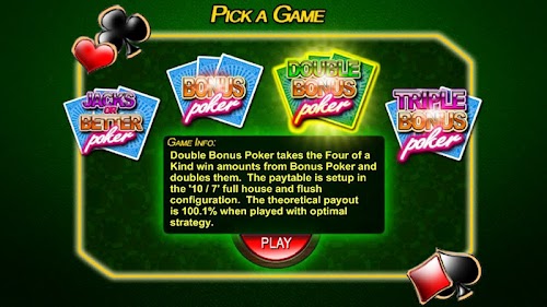 "Double Bonus Poker" - Similar to Bonus Poker, but pays all Four of a Kind wins at 2X.