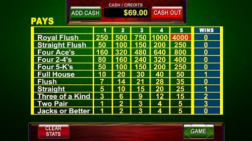 "Stats Page" - Keeps card hand win statistics to let you track play and to help you play with optimal strategy.
